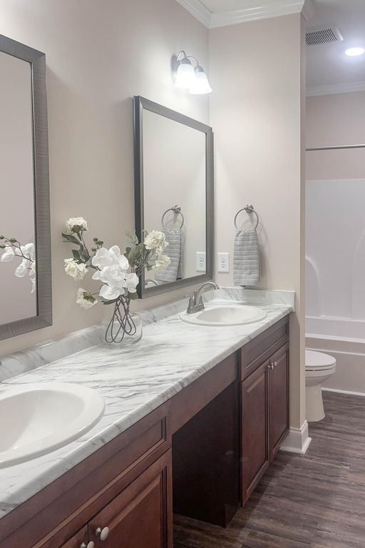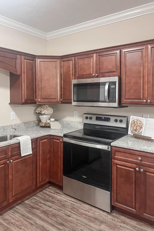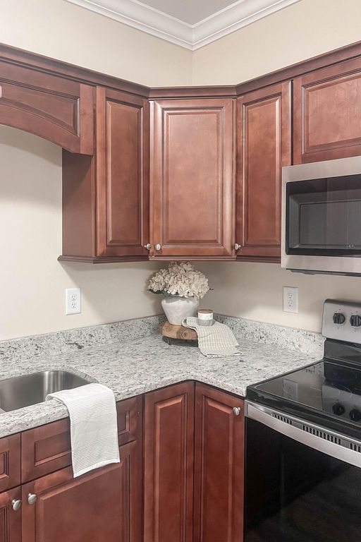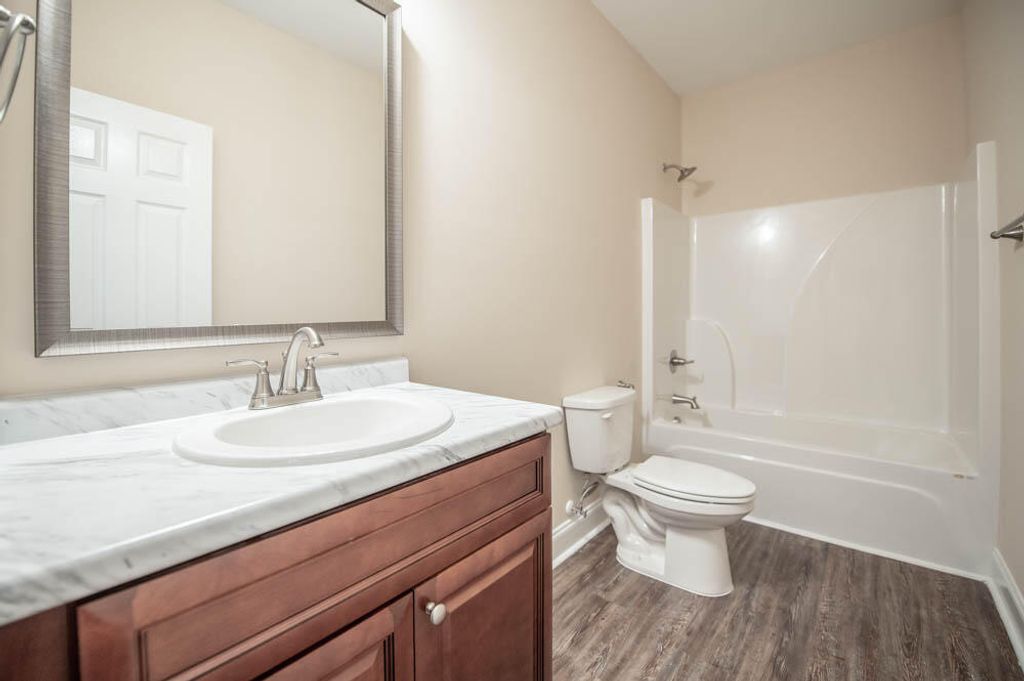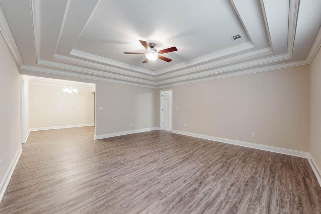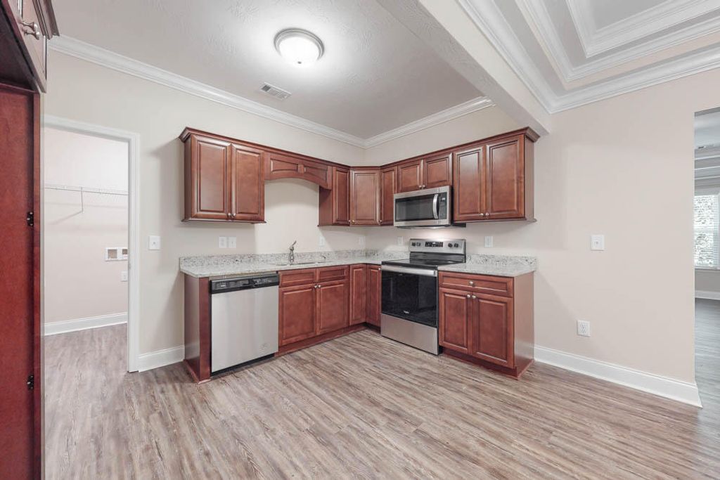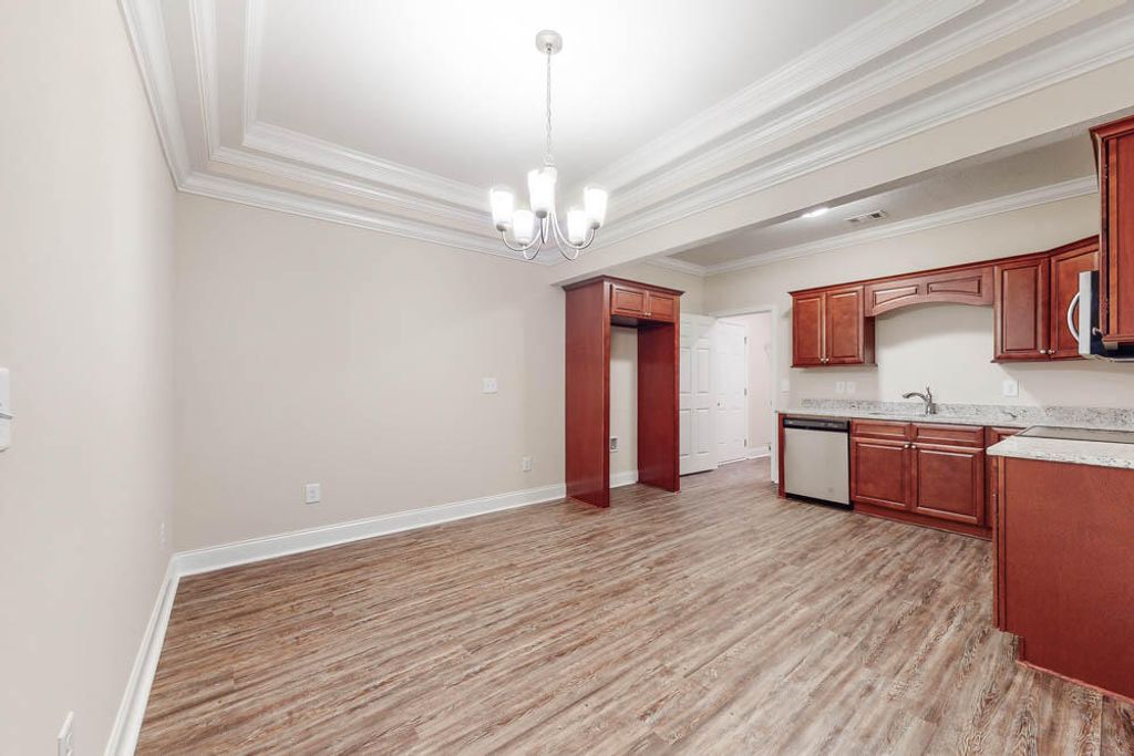 Convenient downtown North Augusta single family 3 bedroom 2 bath home with attached 2 car garage plus additional parking spot! Rocking chair front porch welcomes guests! Beautiful flooring! Spacious living room with fantastic tray ceiling with upgraded moldings & ceiling fan! Kitchen with built in microwave and beautiful granite countertops opens up wonderfully to dining area! Split bedroom plan! Large owners suite with additional upgraded ceiling treatment, ceiling fan, walk in closet plus private bathroom with double sink vanity! Two additional spare bedrooms with ceiling fans and one of the bedrooms having a walk-in closet! Spare bathroom nice sized with hall linen closet! Laundry room with utility sink! Covered back porch with ceiling fan already installed overlooking nice level backyard! Long life architectural shingle roof! Double pane energy efficient windows! Brick accents & easy to maintain siding! Easy access to everything in North Augusta, downtown Augusta medical district, Aiken/Augusta highway, SRS, Fort Gordon & more!